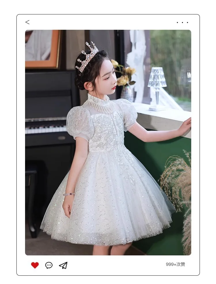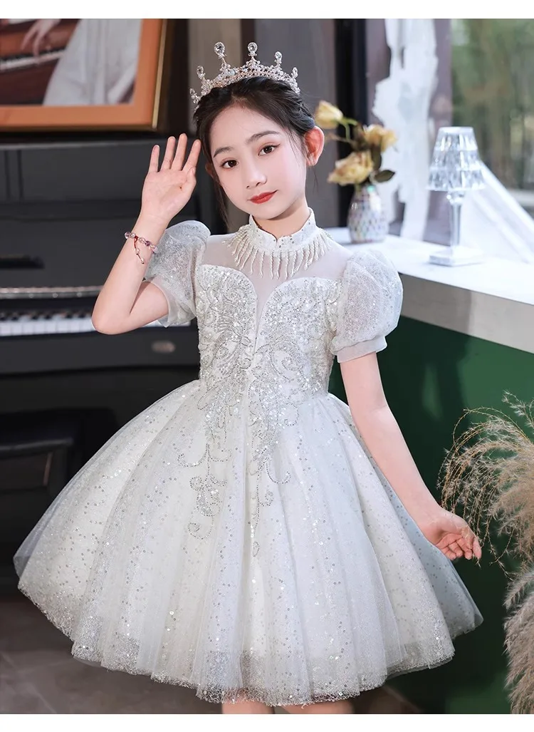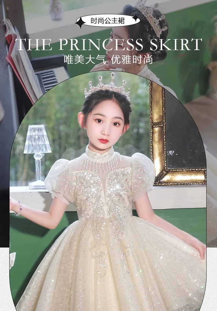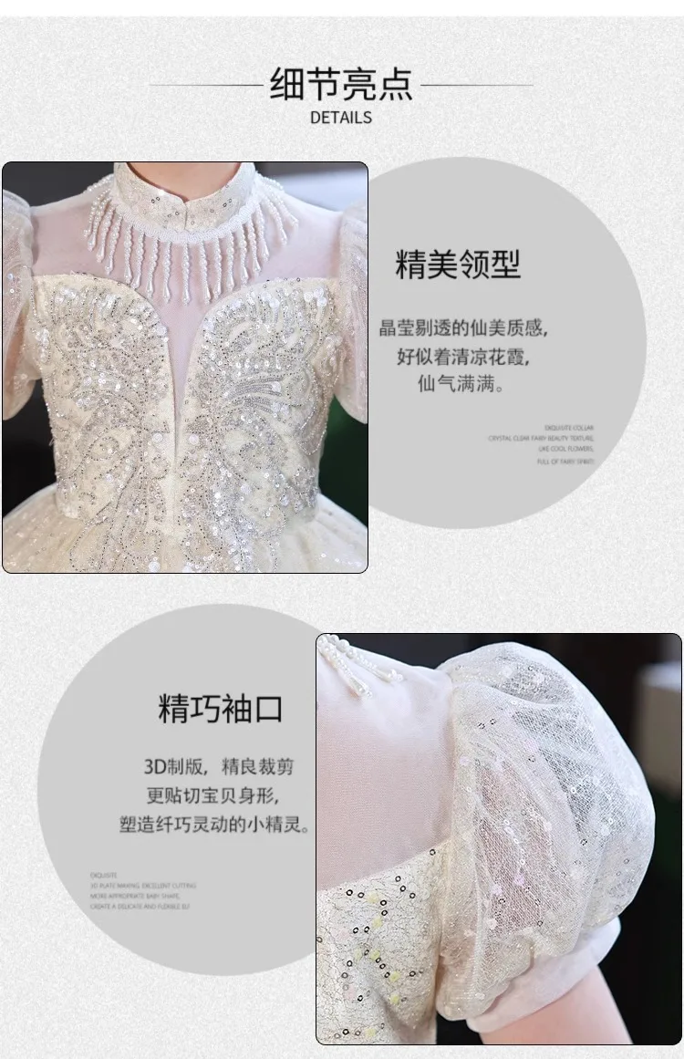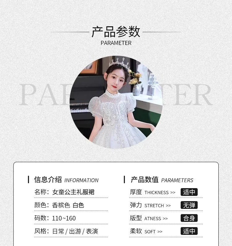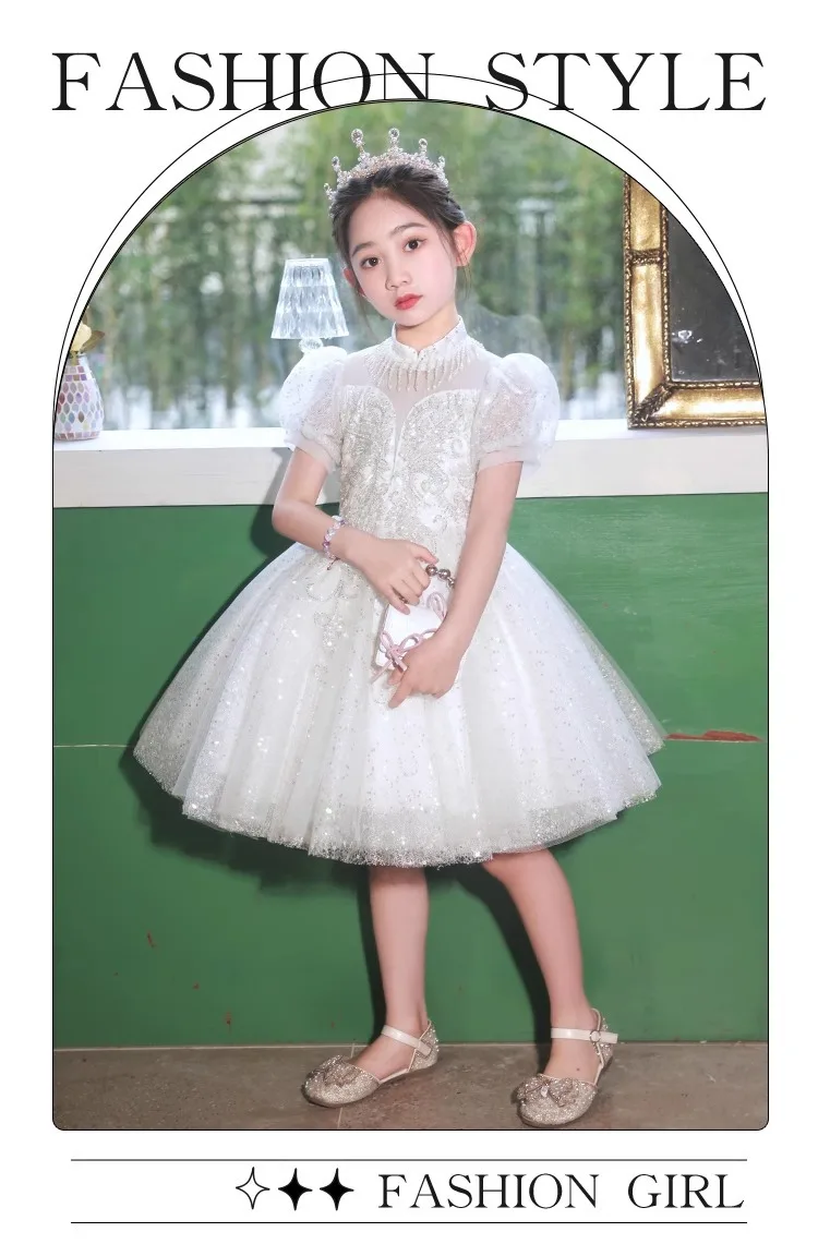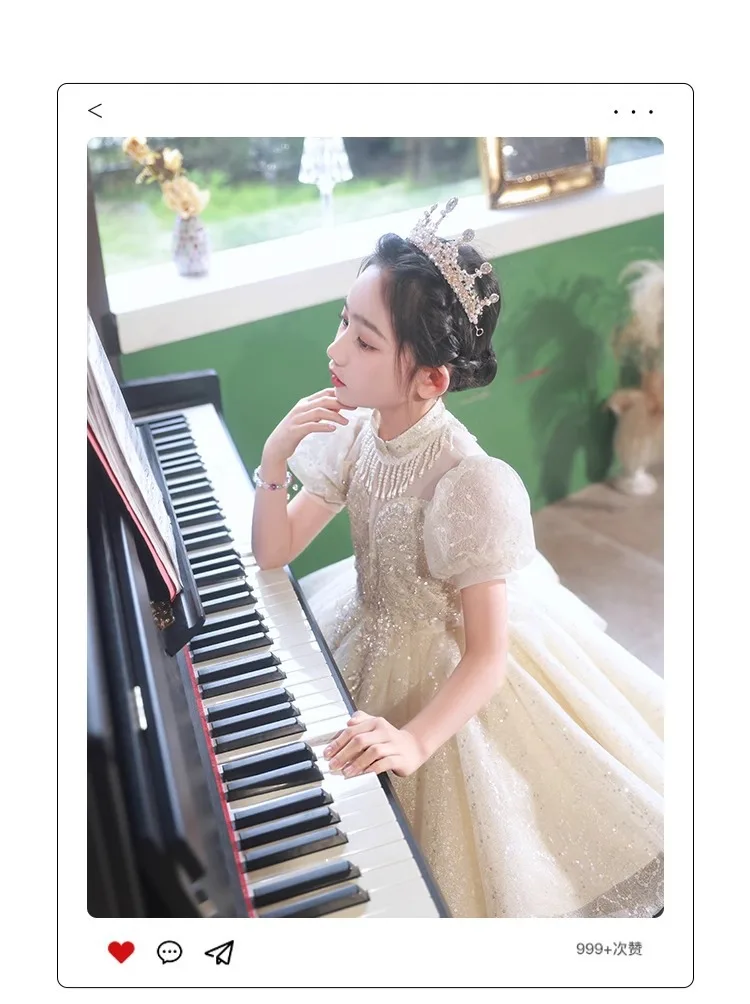 Light Luxury Minority Costume for Piano Performance Host Flower Girl Ball Dress