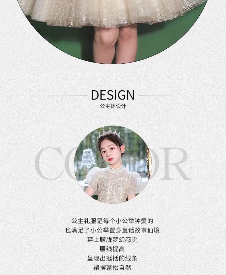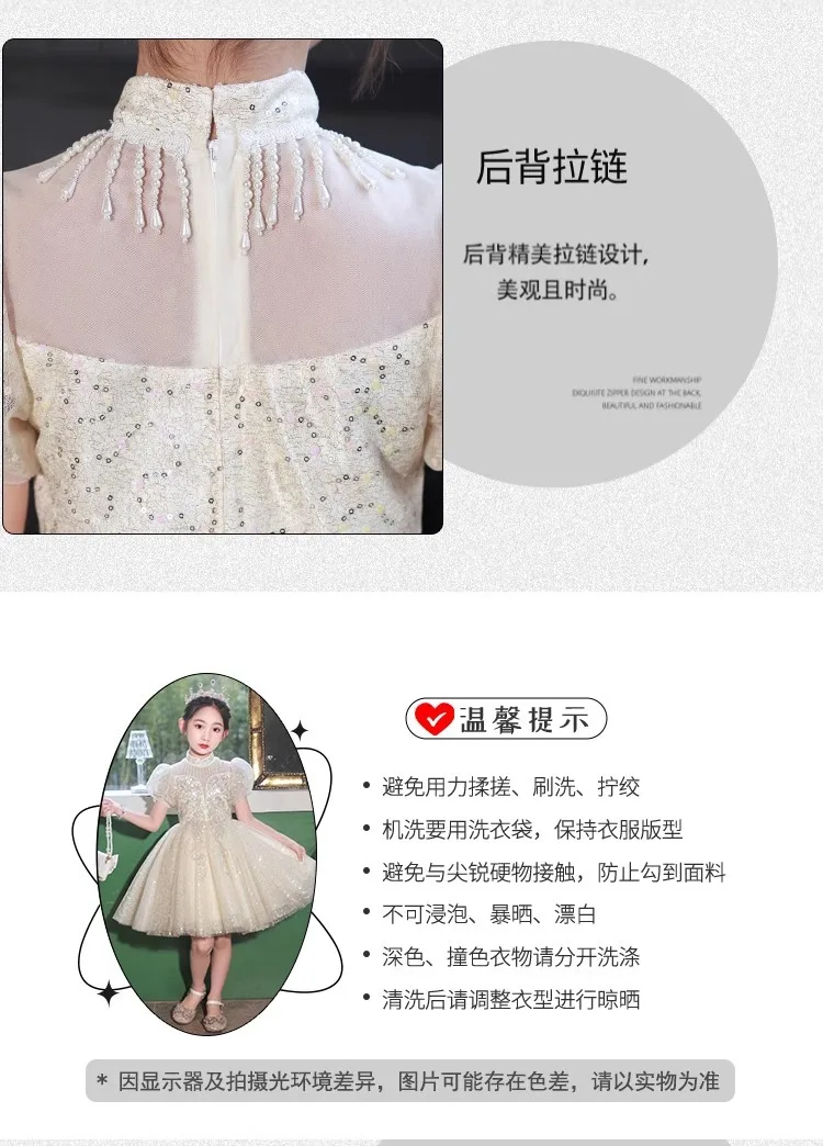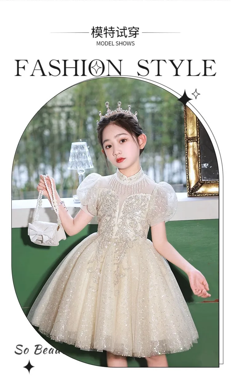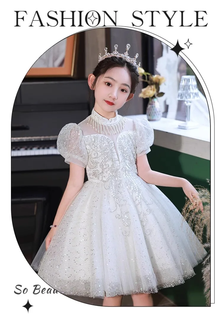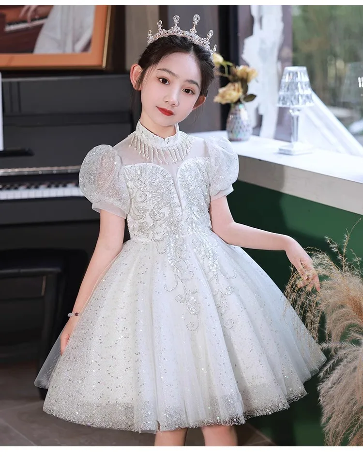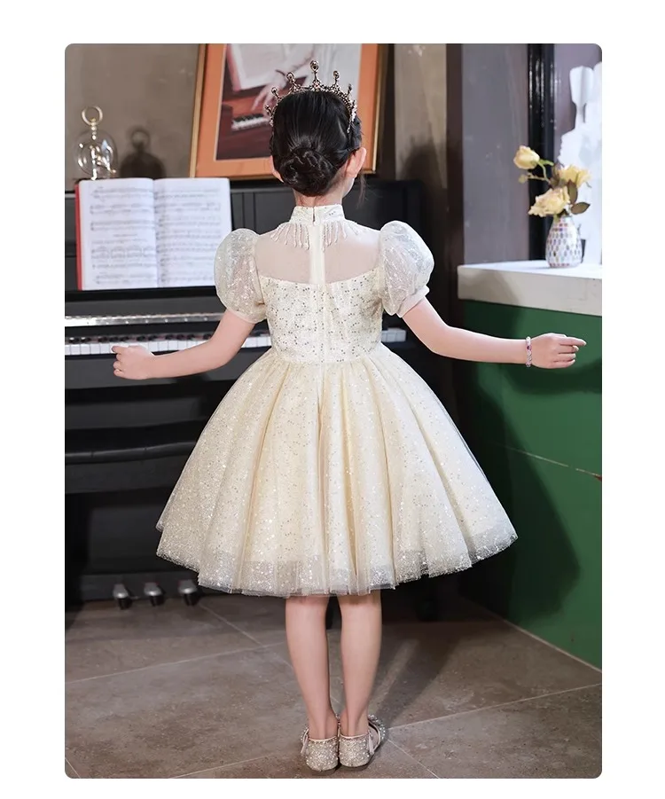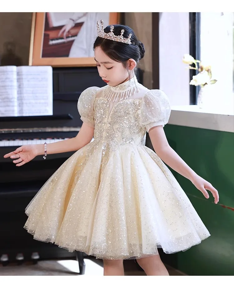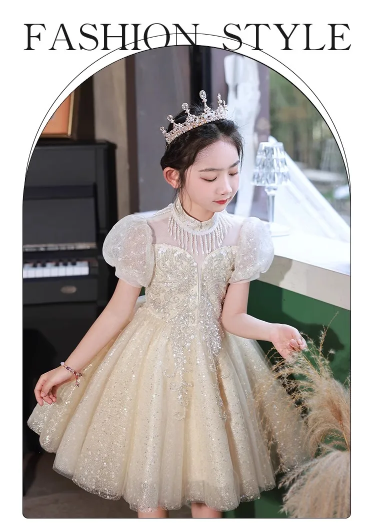 Light Luxury Minority Costume for Piano Performance Host Flower Girl Ball Dress