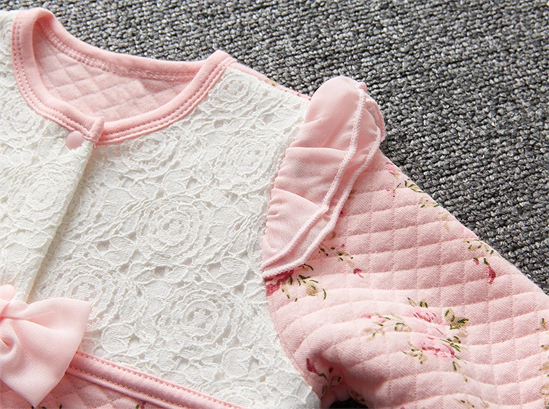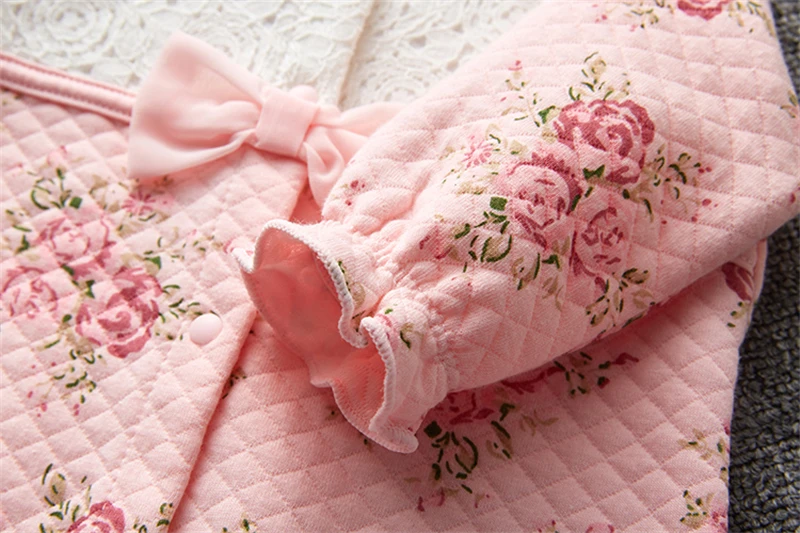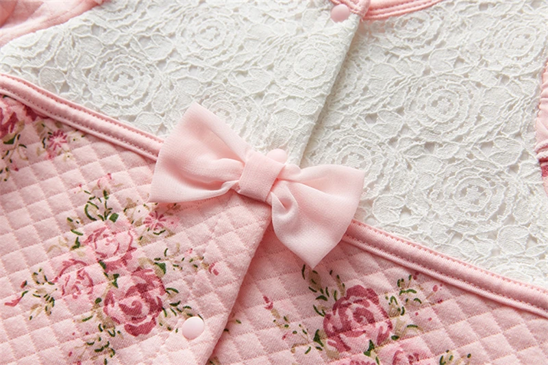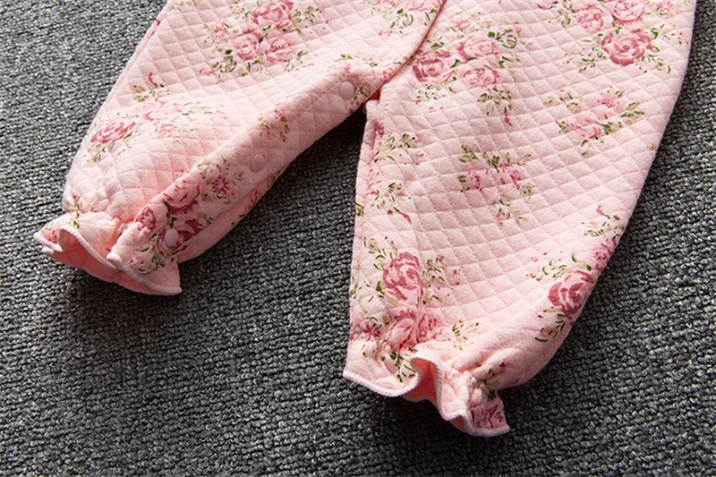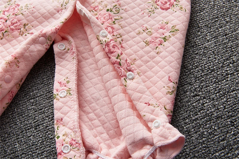 Winter Newborn Baby Girl Clothes Thicken Floral Princess Jumpsuit Clothing Sets Girls Bodysuit+ Hats